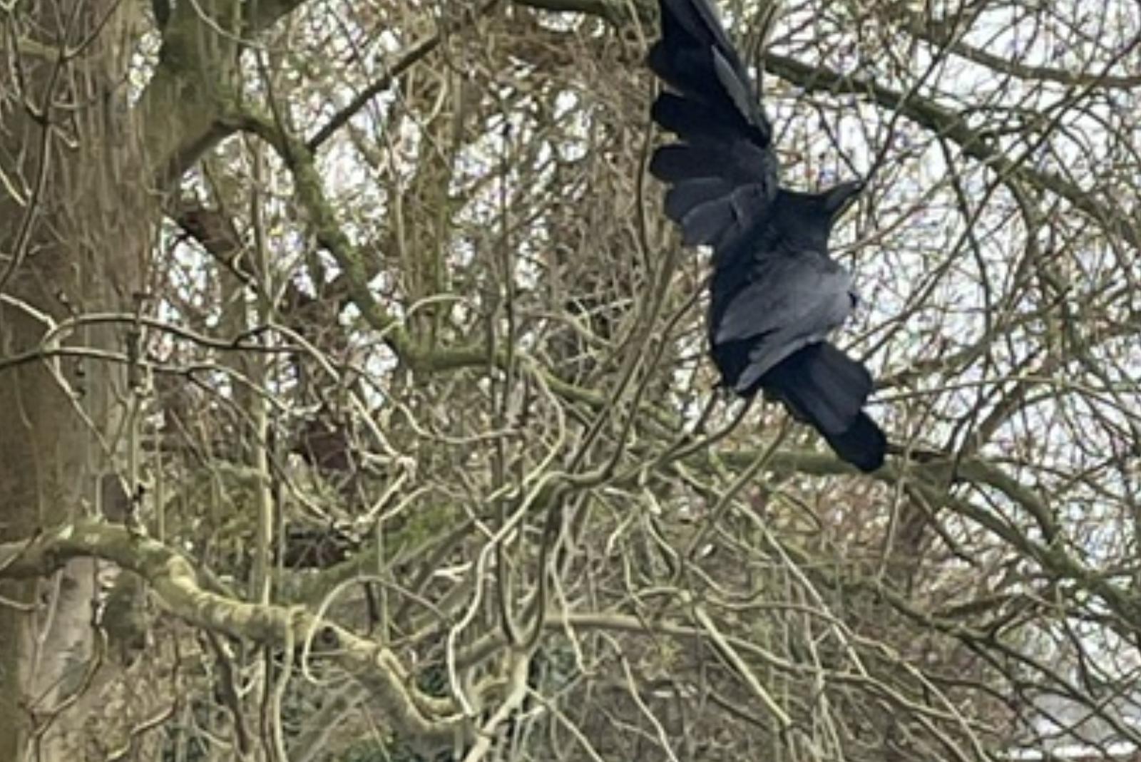 Tierischer Einsatz in Jemgum: Zwei Einsatzkräfte der Freiwilligen Feuerwehr haben eine Krähe befreit, die sich am Dukelweg in einer Angelschnur verheddert hatte und daran hilflos in einem Baum hing.