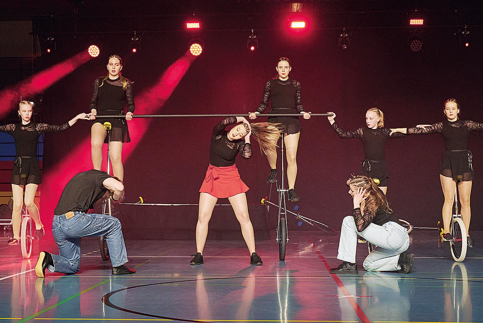 Die Einrad-Gruppe »AkEiTu« des TV Bunde ist kürzlich bei der vierten Ausgabe der großen Benefizshow »Schausport« in Wilhelmshaven aufgetreten.