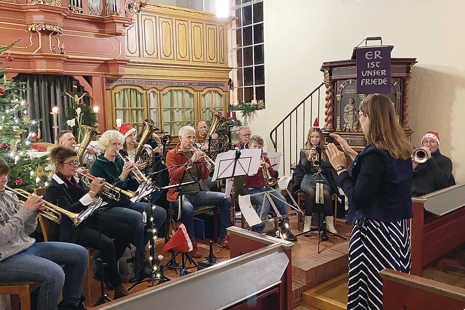 Mit festlichen Klängen stimmte der Posaunenchor Wybelsum am Vorabend des vierten Advents in Pogum auf das nahende Weihnachtsfest ein.