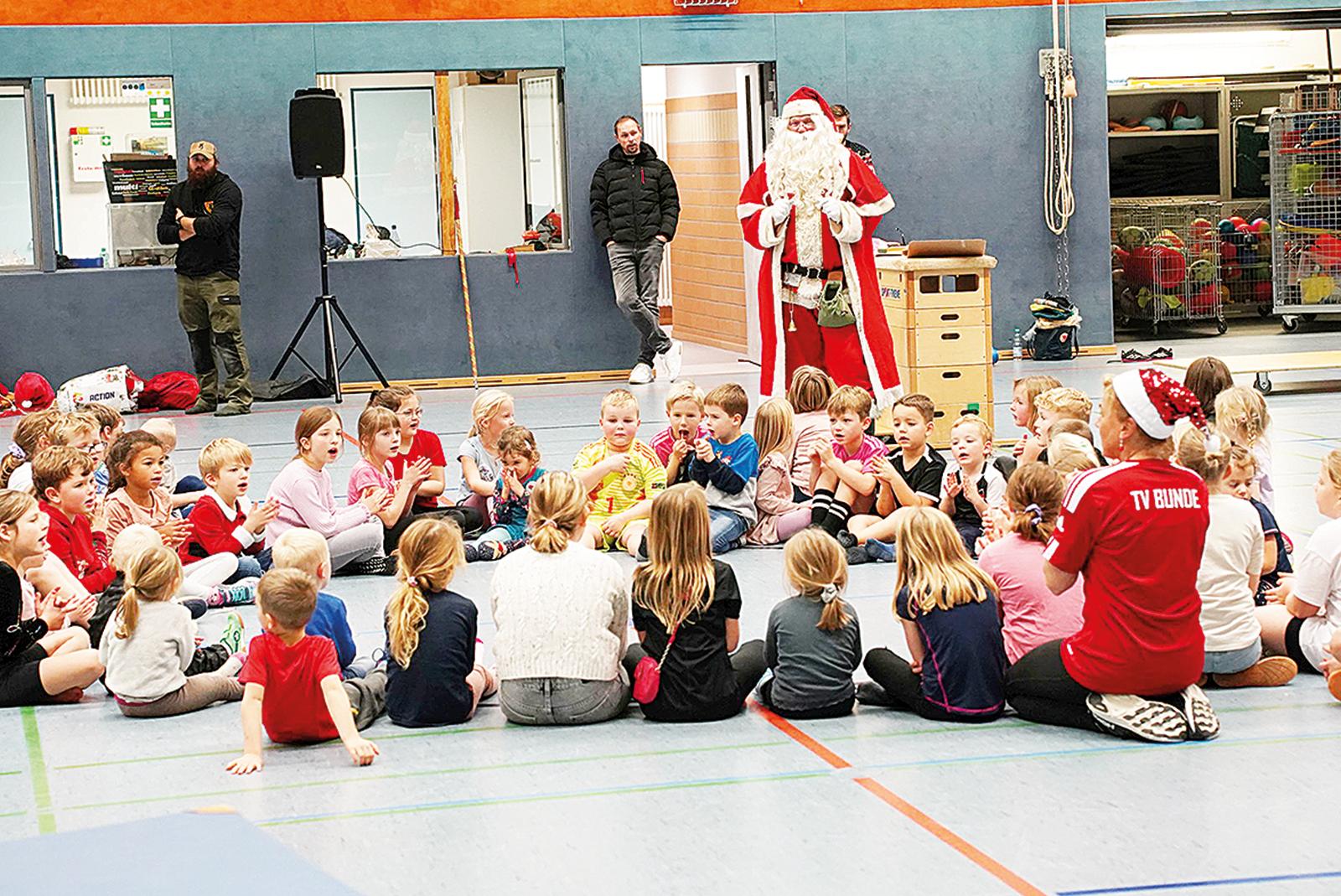 Gemeinsam mit der Schwimmabteilung hat die Turnabteilung des TV Bunde am dritten Advent ein Weihnachts-Sportpicknick auf die Beine gestellt. In der Mölenland-Halle konnten sich 150 Kinder zu Weihnachtshelfern turnen. Später wurden sie vom Weihnachtsmann belohnt.