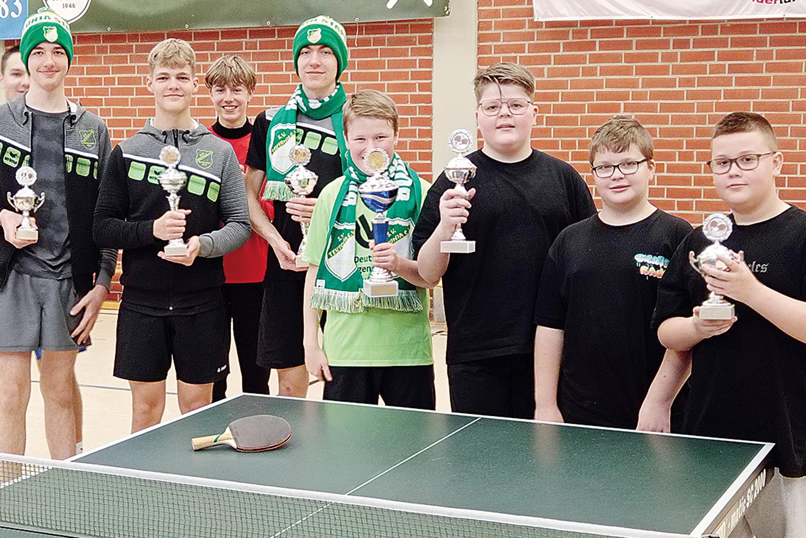 Auch die Jugendvereinsmeisterschaften des SV Teutonia Stapelmoor im Tischtennis haben im Dezember stattgefunden. Mit zehn Teilnehmern wurde im Modus »Jeder gegen Jeden« gespielt, der für viele spannende und abwechslungsreiche Partien sorgte. Am Ende wurden die Sieger in zwei Gruppen ...