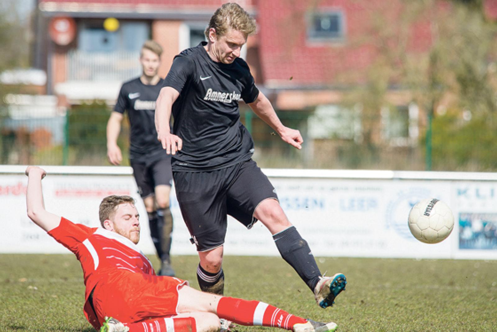 Packende Zweikämpfe wie diesen zwischen Nico Modder (l.) und Friedo Busemann bot das Derby am Sonntag kaum. © Foto: Mentrup