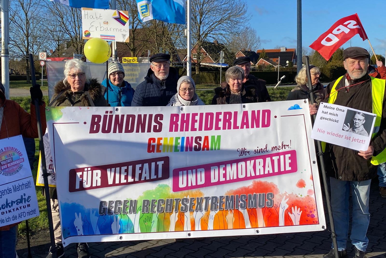 Bei strahlendem Sonnenschein fand heute der Auftakt der Rheiderländer Protestbewegung in Jemgum statt. Um die 60 Bürgerinnen und Bürger kamen auf dem Parkplatz des "Nah und Gut Blank"-Marktes im Ortskern zusammen und zeigten Flagge ...