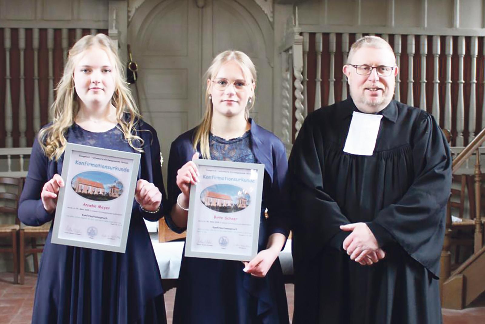 Auch in der evangelisch-reformierten Kirche von Hatzum wurde am 30. März Konfirmation gefeiert. Im Rahmen eines feierlichen Gottesdienstes, der von Pastor Michael Schlieker gehalten wurde, wurden Anneke Meyer (links) und Birte Scheer in die Kirchengemeinde aufgenommen.