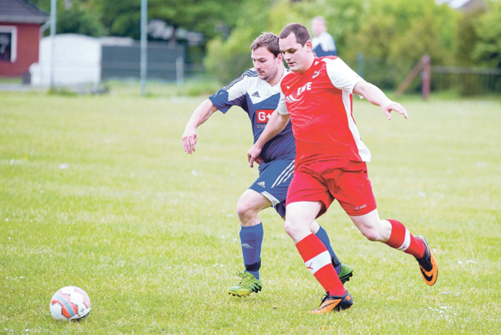 Im Laufduell: Holthusens Marcel Freesemann und Jemgums Markus Bärwald. © Foto: Mentrup