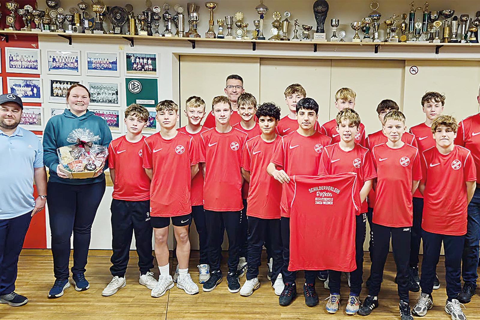 Die C-Jugend des SV Ems Jemgum hat neue Trainings-T-Shirts erhalten. Gesponsert wurden diese vom Schilderverleih Rösken aus Tichelwarf. Als kleines Dankeschön überreichte die Mannschaft Laura und Tom Rösken bei der Überreichung der Shirts einen Präsentkorb. »Ein ...