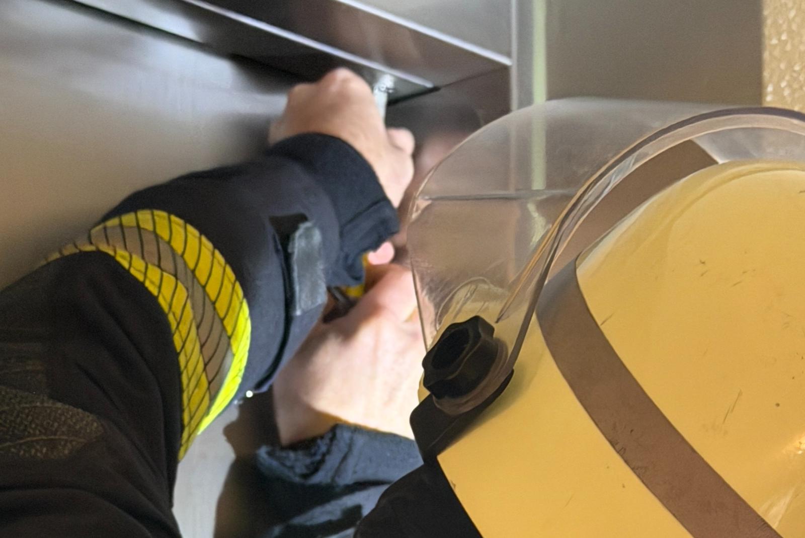 Mit etwas Werkzeug gelang der Feuerwehr die Befreiung binnen weniger Minuten. Alle Beteiligten überstanden die Zwangspause unbeschadet.