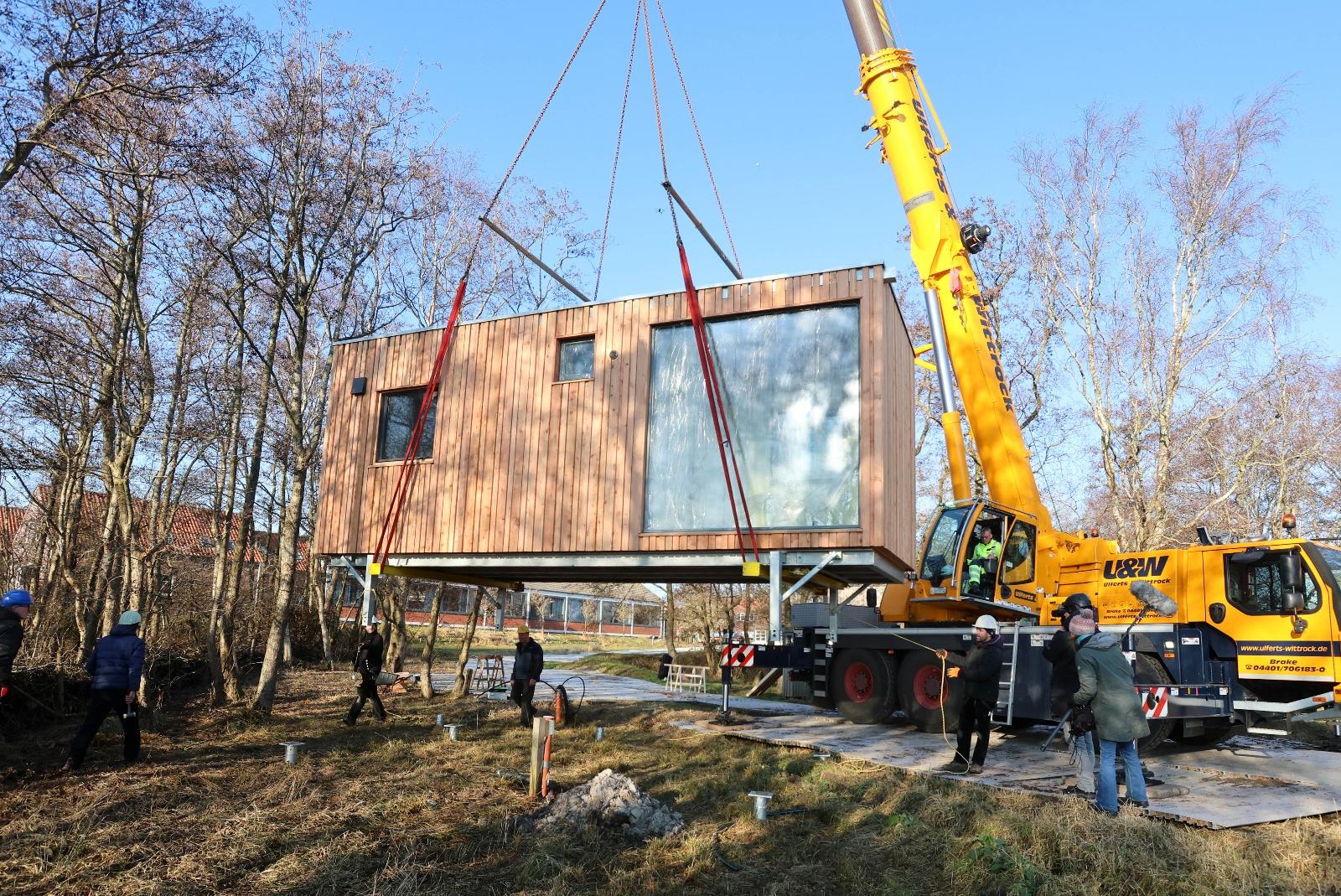 Tiny Houses für Internat kommen per Fähre