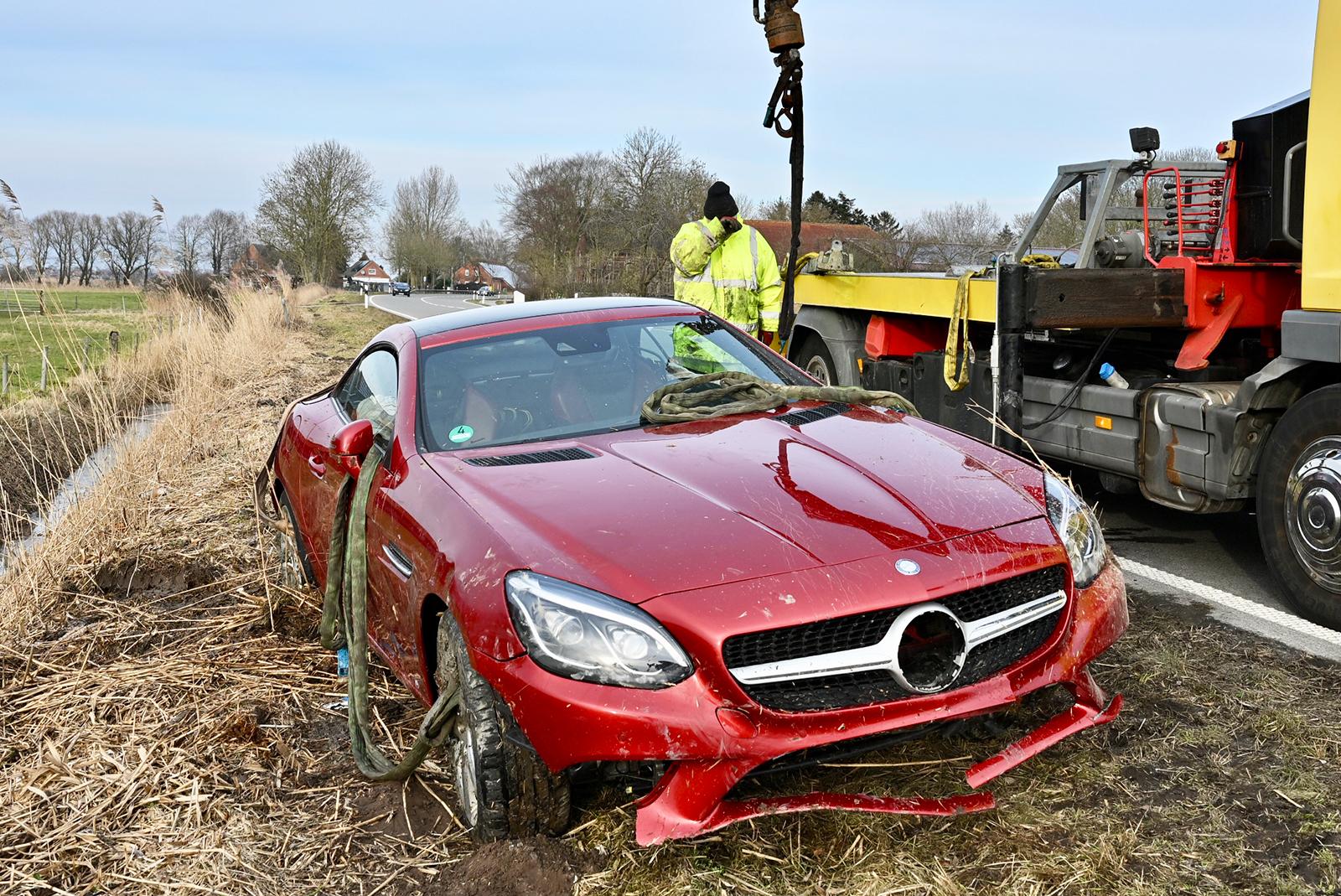 Mercedes landet bei Coldam im Graben