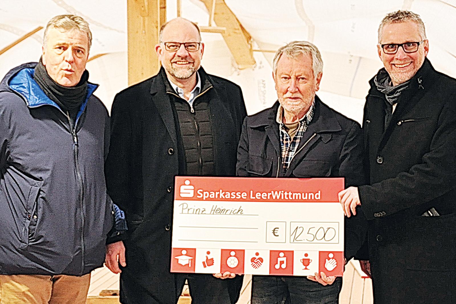 Arne?Butt von der Niedersächsischen Sparkassenstiftung besuchten jetzt das historische Dampfschiff »Prinz?Heinrich« im Leeraner Hafen. Dort überreichten sie einen symbolischen Scheck über 12.500?Euro – den Anteil ...