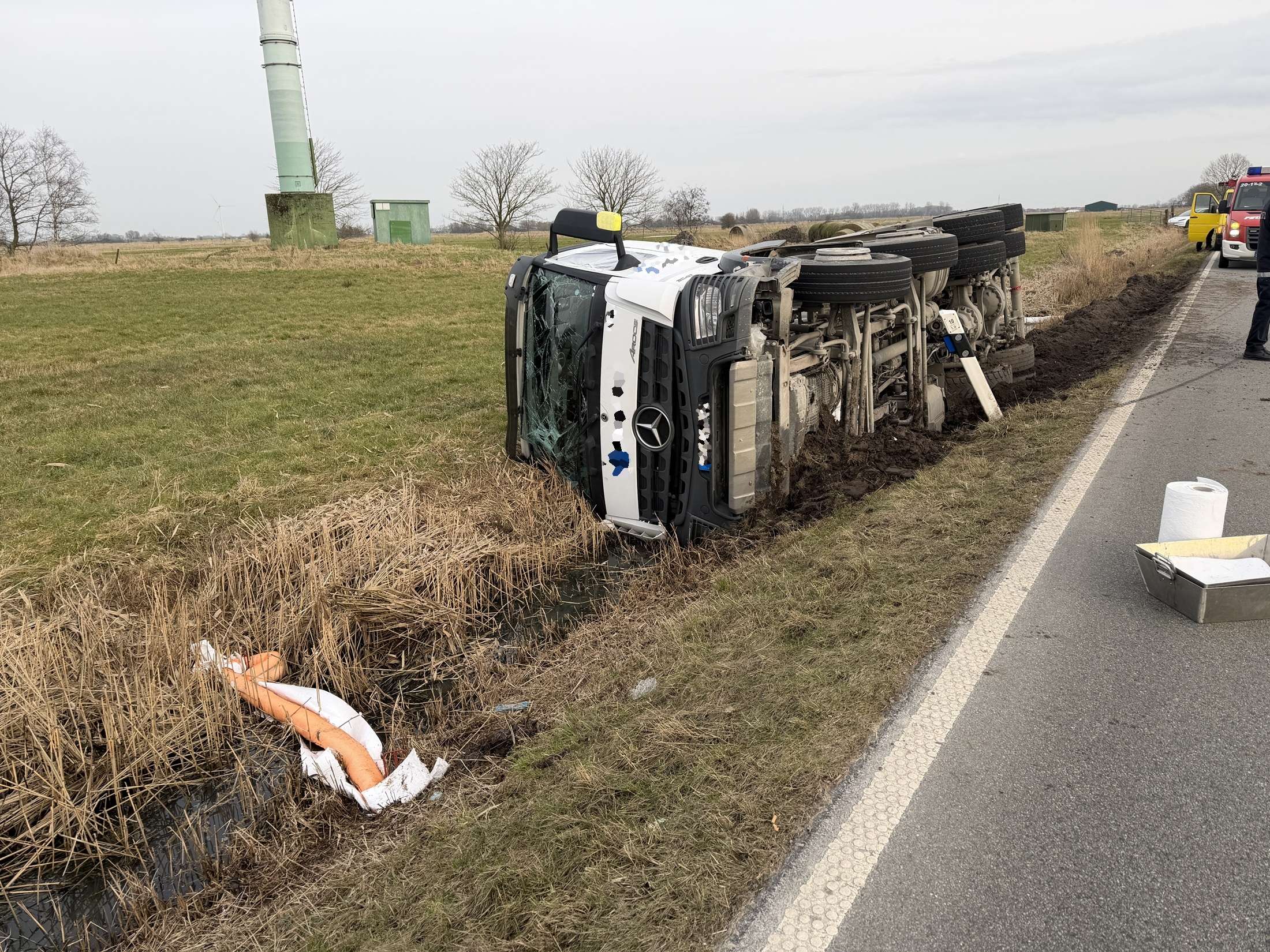 Betonmischer kippt in einen Graben