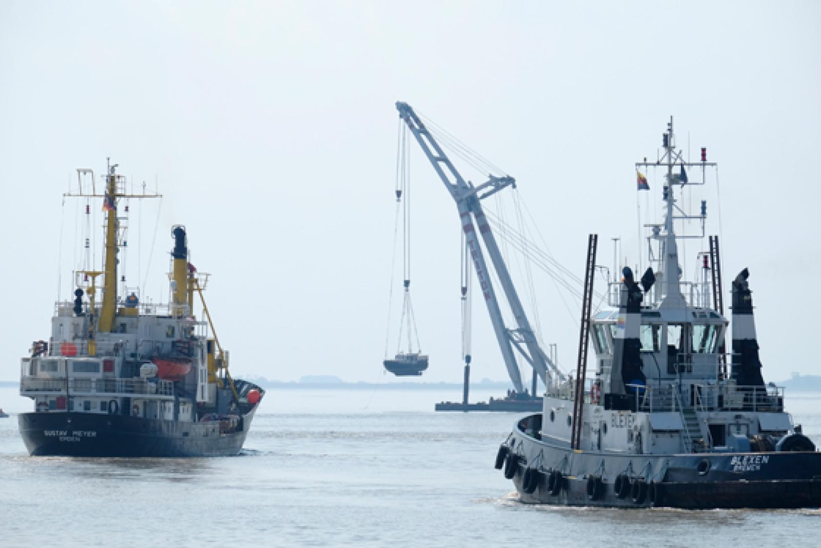 Bergung von havariertem Sportboot mit Schwimmkran gelungen