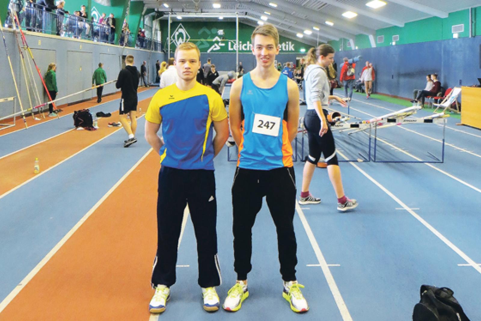 Diese Reise hat sich gelohnt: Torben Veenhuis und Henning Kruse, die beiden Hochspringer der Leichtathletikabteilung des TuS Weener, haben bei der ersten »Jump Indoor«-Veranstaltung des SV Werder Bremen in der Leichtathletikhalle des SVW mit guten Leistungen überzeugt.