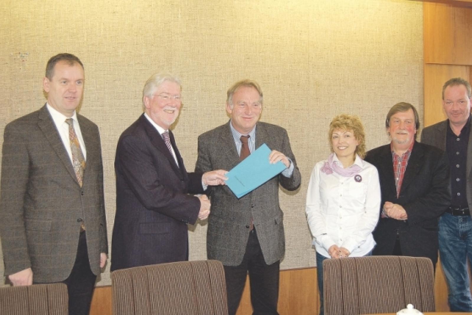 Der Firma Einsiedel & Partner wurde jetzt die Baugenehmigung für die Residenz am Nesseufer erteilt. Bürgermeister Wolfgang Kellner überreichte die Unterlagen persönlich an Dieter Einsiedel.