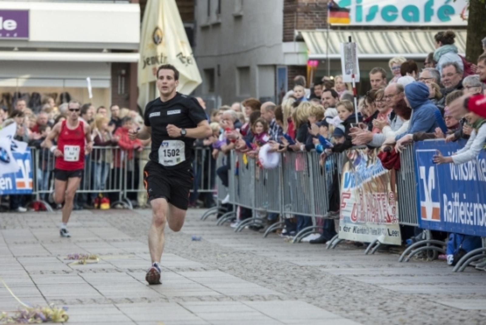 Auf den letzten Metern: Uwe Barth beim Zieleinlauf. Die Zuschauer feierten jeden einzelnen Ossilooper, der den Marktplatz erreichte. © Foto: Mentrup